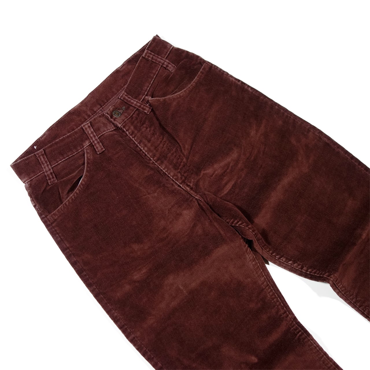 実寸:{S};76, 80, 29, 31, 24, 107;(ウエスト, 股下, 股上, ワタリ, 裾幅, 全長)